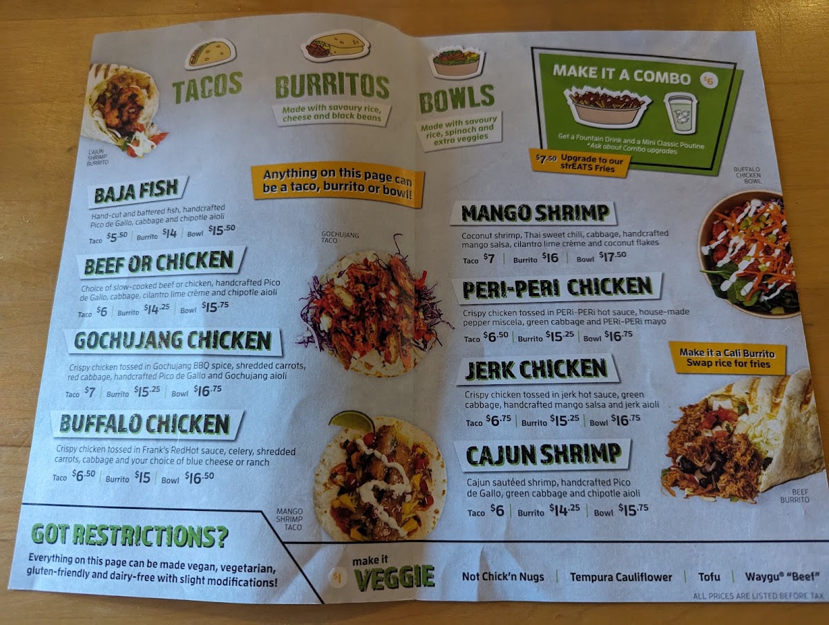 Welcome to strEATS Ottawa, a vibrant culinary gem nestled at 484 Hazeldean Rd in Ottawa. Known for its diverse taco offerings, the menu shines with delightful creations like the Mango Shrimp Taco and Gochujang Chicken Taco, both of which have garnered rave reviews from eager patrons. Guests have praised the impeccable preparation and fresh ingredients, with the mango salsa perfectly complementing the shrimp in a burst of flavor.
